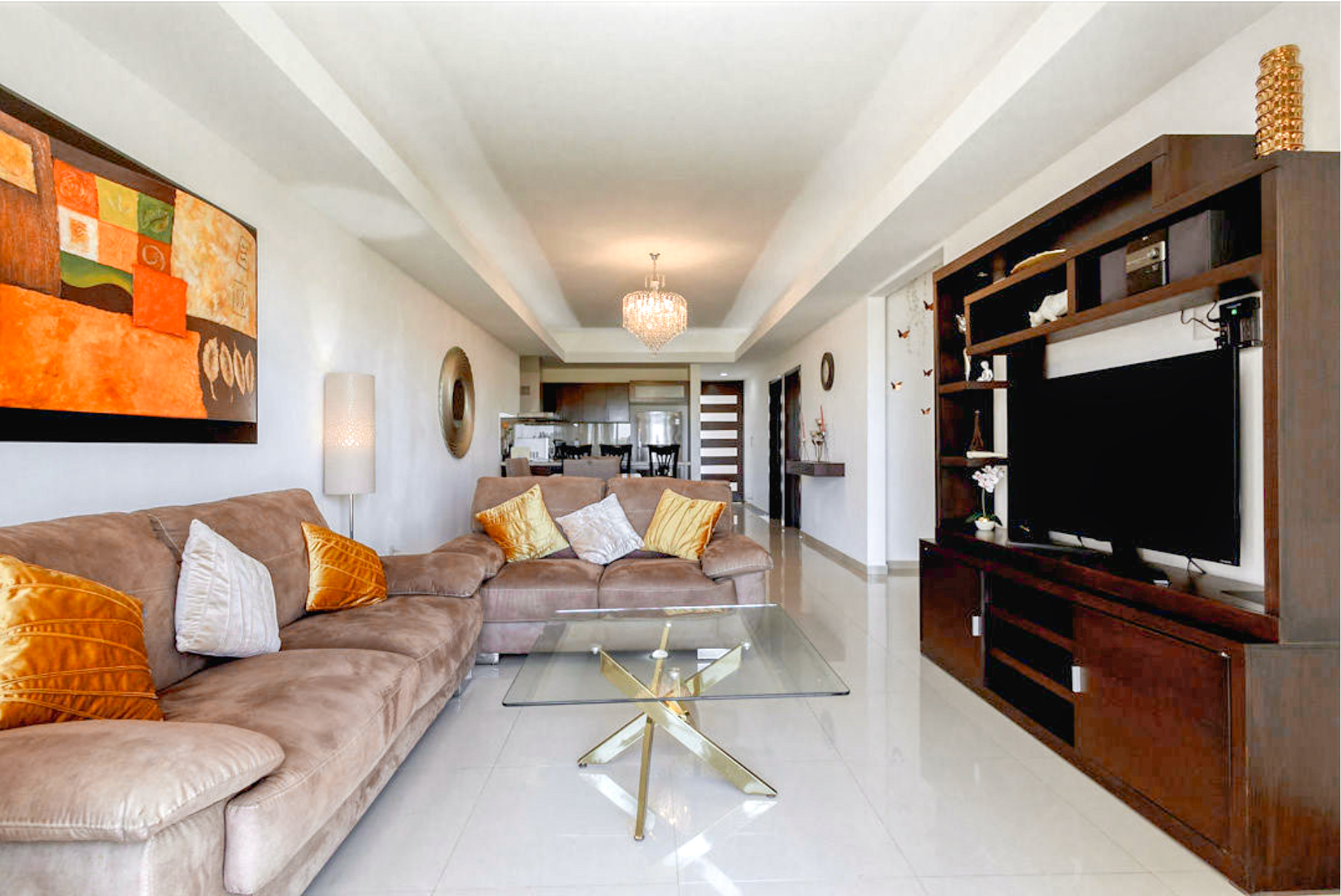 Amplio condominio en renta en el tercer piso, en Marina Platino con vista al campo de Golf de Marina Mazatlán, completamente amueblado y equipado.